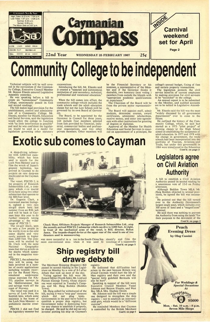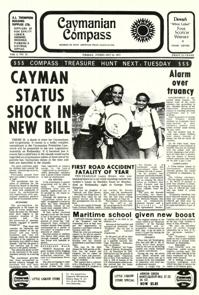 The Compass Archive is a living chronicle of the Cayman Islands - a carefully preserved record of the people, politics and events that have shaped our nation since the 1960s. The project was made possible thanks to Compass Media parent company Dart, and the Kenneth B. Dart Foundation.